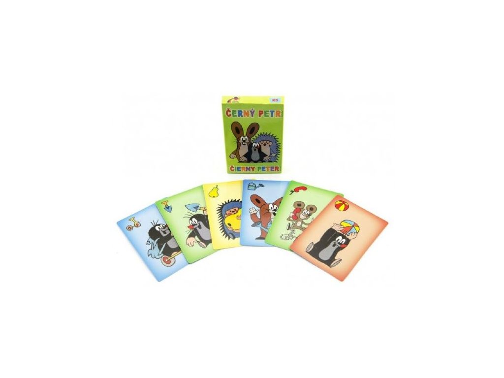 Hra Černý Petr s motivem Krtka. Karty jsou v papírové krabičce 6x9 cm. Vhodné od 3 let.