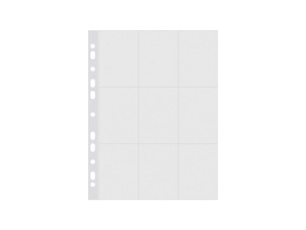 Každý list obsahuje 9 průhledných kapes, do kterých lze karty ukládat z jedné nebo z obou stran. Při oboustranném vkládání se tak do jednoho listu vejde až 18 karet. Obal je vyroben z kvalitního transparentního PP materiálu s lesklým povrchem, který umožňuje karty dobře vidět a zároveň je chrání před otisky prstů a poškrábáním.