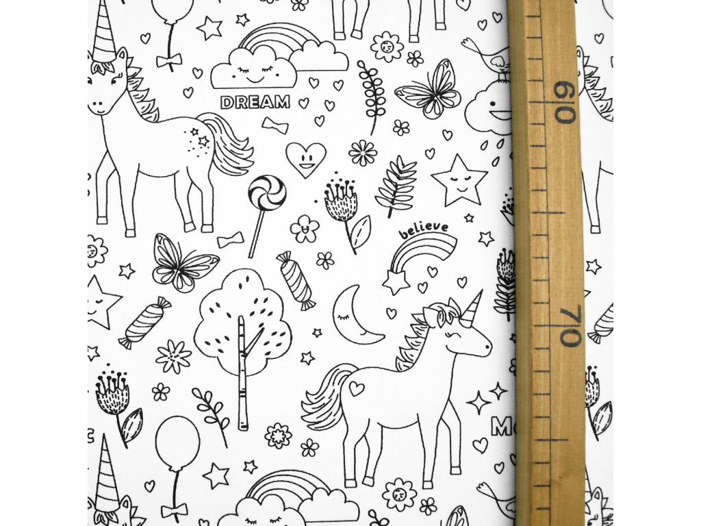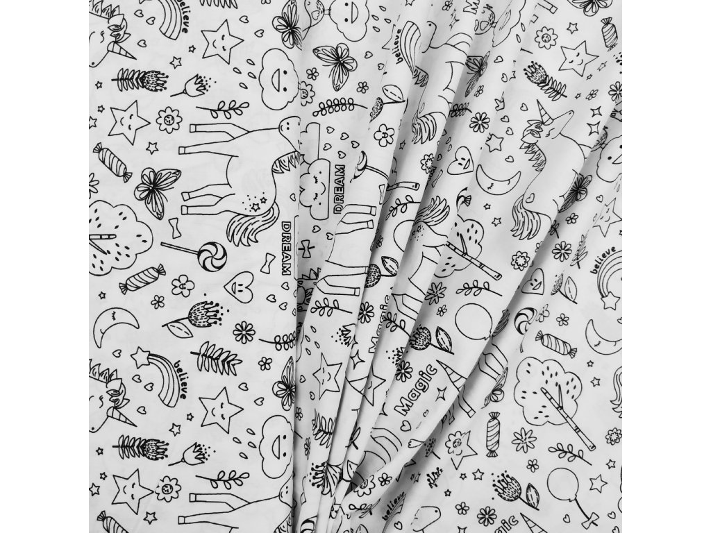 Plátno s potiskem ve stylu omalovánky je perfektní volba pro všechny, kdo chtějí spojit šití s hravostí a tvořením. Jedná se o kvalitní bavlněnou látku s černobílým potiskem, který je určen k vybarvování textilními fixy, barvami na textil nebo i k ponechání jako minimalistický vzor.