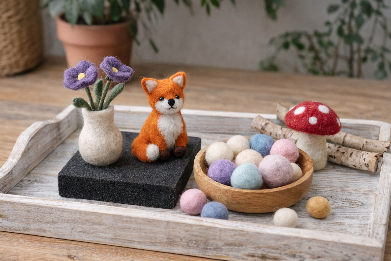 V Majjam jsme připravili materiály i tvořící sady na plstění, se kterými se tvoří s lehkostí – i pokud držíte plsticí jehlu poprvé.