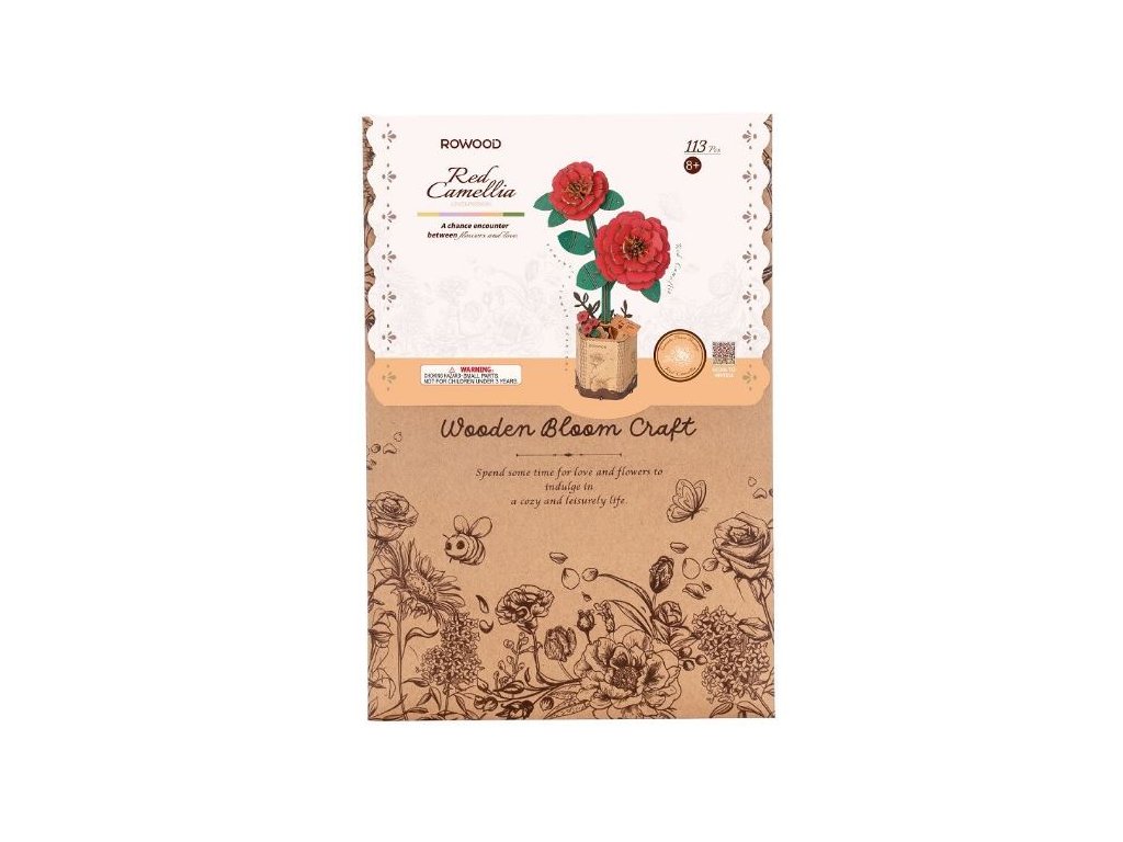 Dřevěné 3D puzzle RoboTime – Červená kamélie je kreativní a vzdělávací skládanka, která pomáhá rozvíjet jemnou motoriku a fantazii dětí. Vyrobeno z přírodního dřeva, bezpečné pro děti a šetrné k přírodě. Obsahuje 113 pečlivě vyřezaných dílků, které snadno spojíte do realistického modelu květiny. Výsledkem je nádherná dekorace na stůl nebo polici.