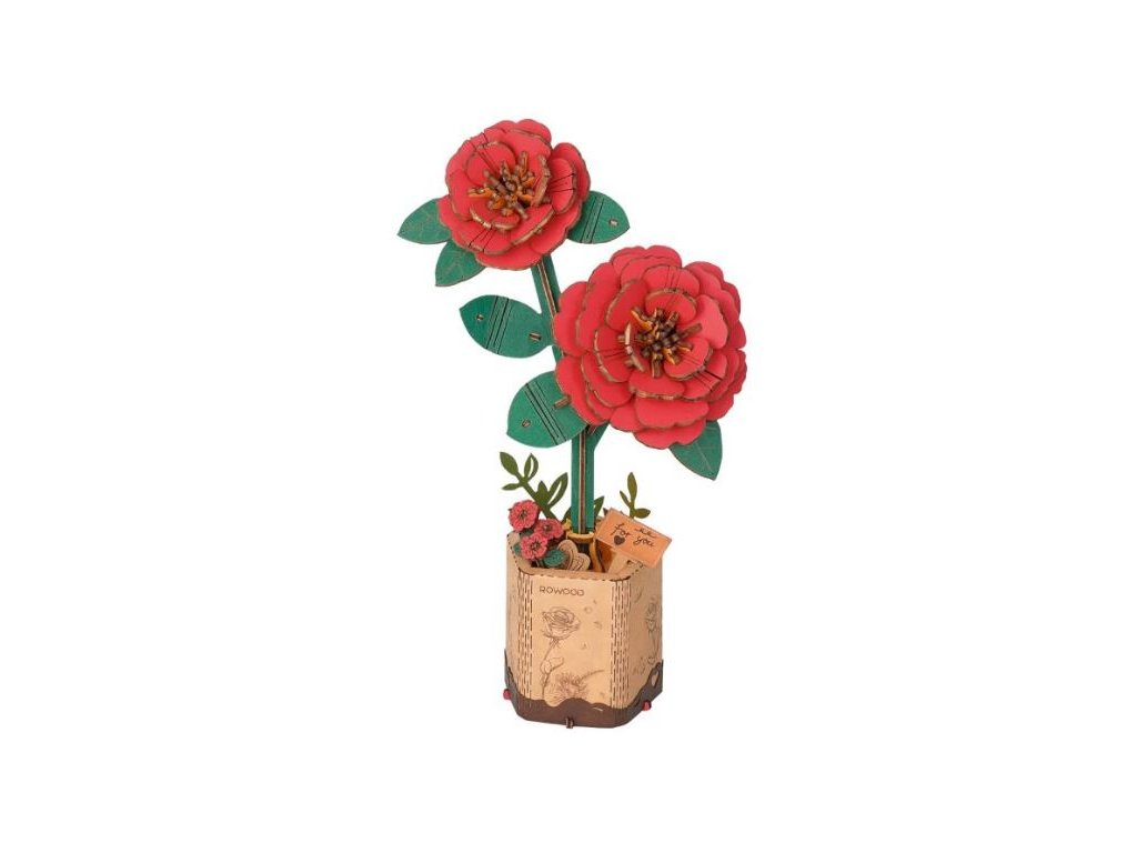 RoboTime - Dřevěné 3D puzzle - Červená kamélie