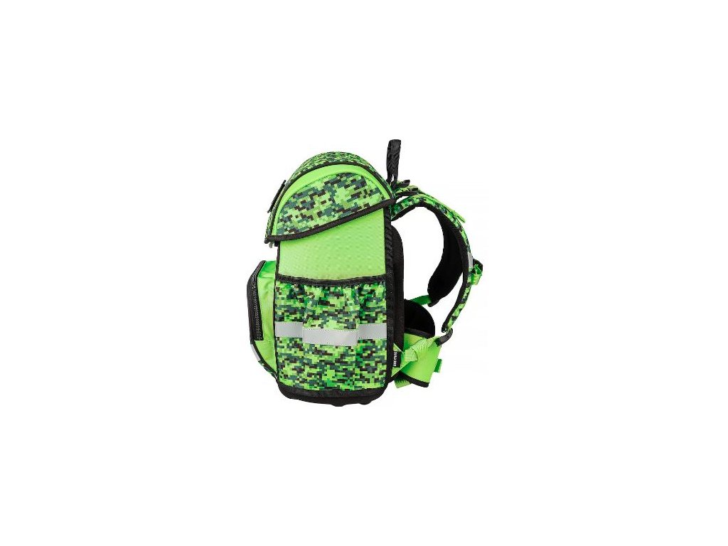 Školní aktovka Play myslí i na bezpečnost dětí. Reflexní prvky na všech stranách zvyšují viditelnost při cestě do školy i ze školy. Aktovka je vyrobena z vodoodpudivého materiálu a její pevné dno s plastovými nožičkami chrání obsah před vlhkostí i nečistotami.