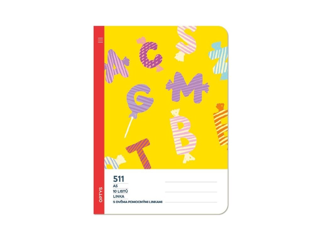 Tento sešit formátu A5 má linku o šířce 20 mm. Je určen pro prvňáčky a druháčky, kteří se učí psát. S tím jim pomáhají dvě pomocné linky, které umožňují soustředit se na tvar a velikost psaných písmen. Sešit o 10 listech má motiv písmene. Motiv dětem pomáhá rozlišit, jestli je vhodný do matematiky, psaní, prvouky nebo jiného předmětu. A učitelům tak usnadňuje komunikaci se žáky.