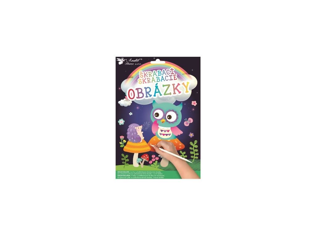 Škrábací obrázky - Sovička - 2 archy jsou oblíbenou volbou pro děti, které milují tvoření. Sada obsahuje dva archy s předtištěnými obrázky, oboustranné rydlo a šablony. Podporuje kreativitu a rozvoj šikovnosti. Bezpečné a snadné použití.