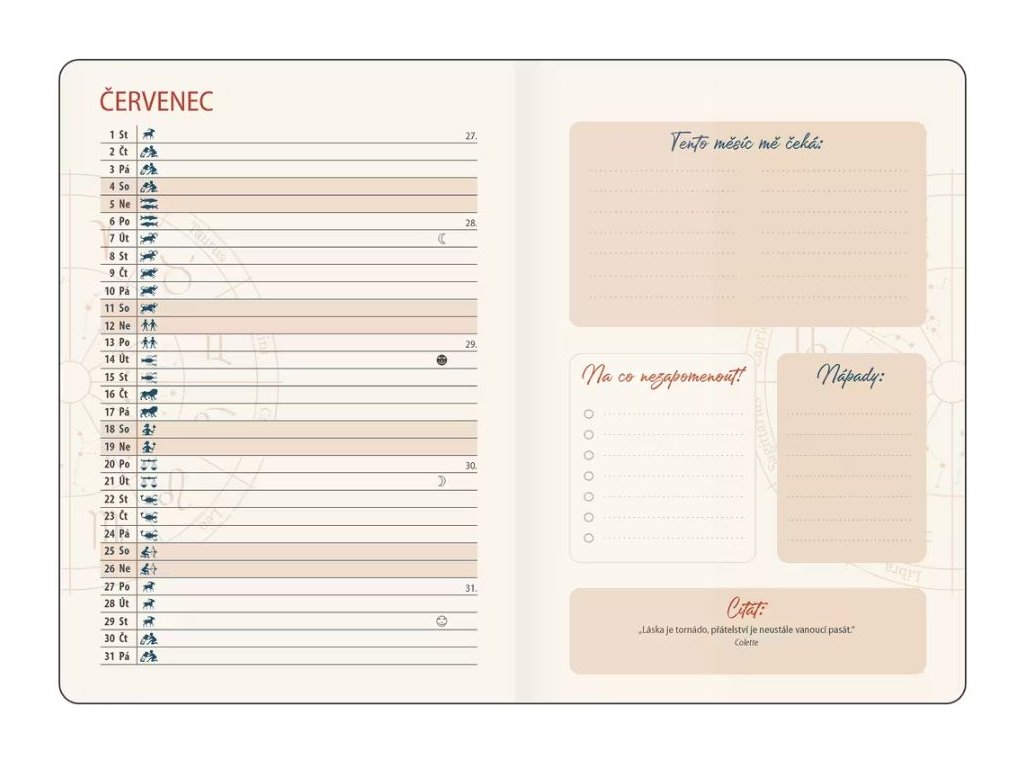 Týdenní diář B6 Lunární Dream s gumičkou je nejen praktický, ale i esteticky přitažlivý. Jeho elegantní design zaujme na první pohled a stane se vaším spolehlivým společníkem.