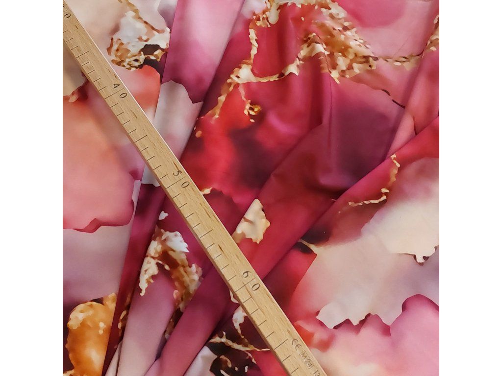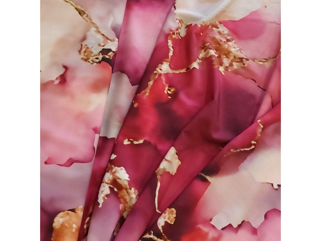 Představ si látku, která se jemně leskne a při každém pohybu vytváří krásné vlny… Silky – umělé hedvábí v růžovém mramoru je přesně ten typ materiálu, ze kterého vznikají výjimečné kousky. Působí luxusně, ale šije se s ním mnohem příjemněji než s pravým hedvábím.
