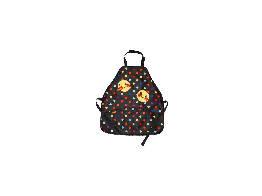 Zástěrka se pohodlně navléká přes hlavu pomocí nastavitelného popruhu a kolem těla se zaváže šňůrkami, takže dobře sedí a dítě se v ní může volně pohybovat. Na přední straně jsou dvě praktické kapsy, kam si děti uloží štětce, pastelky nebo další výtvarné pomůcky. Veselý motiv Smiley navíc přináší radost a energii do každého tvoření a krásně doplní další školní pomůcky.